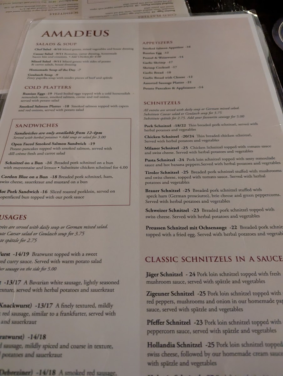 Amadeus Cafe, located at 170 Princess St in Kingston, ON, is a beloved eatery known for its authentic European cuisine. Specializing in delectable German dishes, the menu features standout items like the Holstein Schnitzel and an array of freshly made salads. Customers rave about the generous portions and attentive service, making it a favorite for both casual diners and those seeking a pre-show meal in downtown Kingston. The welcoming atmosphere and knowledgeable staff enrich the experience, ensuring that each visit is memorable. Amadeus Cafe is a true gem for anyone craving hearty, satisfying fare in a vibrant setting.
